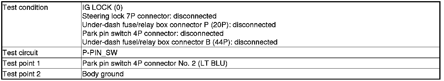 7. Park pin switch check: