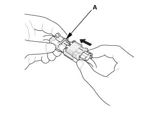 Hold both connector halves, and press them firmly together until the projection (A) of the sleeve-side connector clicks.