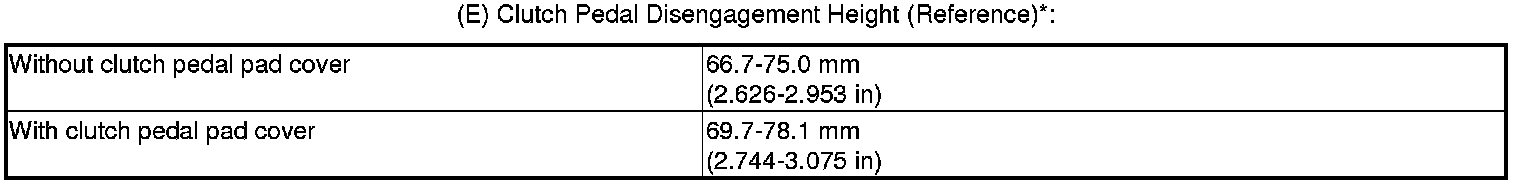 *: Measure the clutch pedal disengagement height from right side middle of the clutch pedal cover or the clutch pedal pad cover (D) to the floor without the insulation.