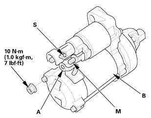3. Check the pull-in coil for continuity between the S terminal and the M terminal. There should be continuity: