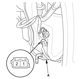2. Test the washer motor (A) by connecting battery power to terminal No. 2 and ground to terminal No. 1 of the motor. The motor should run.