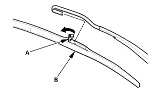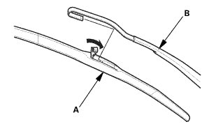 2. Install the wiper blade assembly (A) onto the windshield wiper arm (B).