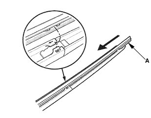 4. Find the blade holder labeled "SET" (A), then release the wiper blade from it.