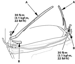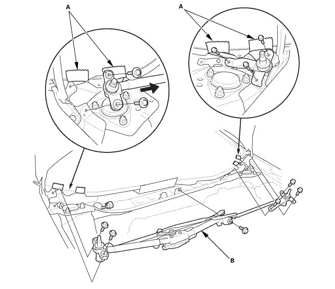 3. Remove the wiper linkage assembly (B).