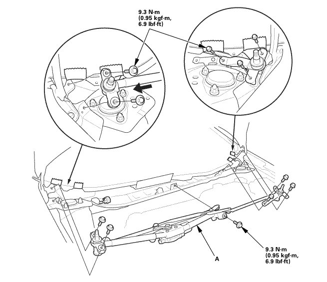 1. Install the wiper linkage assembly (A).
