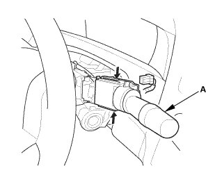 2. Remove the wiper/washer switch (A) by pressing the tabs.
