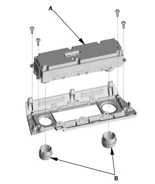 1. Connect the connectors, then install the audio-navigation unit (A).
