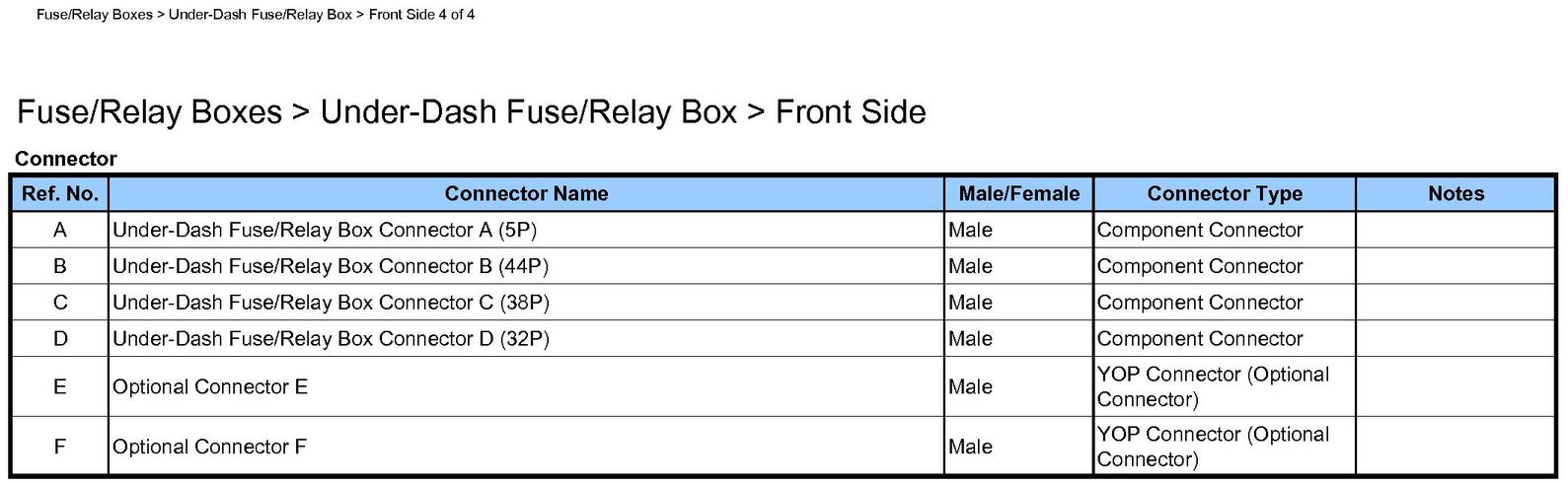 Fuse/Relay Boxes Locations Under-Dash Fuse/Relay Box - Front Side