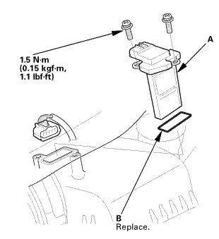 1. Install the MAF sensor/IAT sensor (A) with a new O-ring (B).