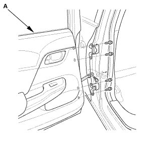 4. Check that the door and body edges are parallel. If necessary, adjust the door cushions (A) to make the rear of the doors flush with the body.