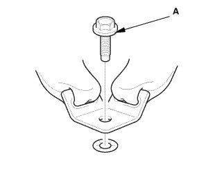 1. Remove the center seat belt buckle bolt (A) at the floor.