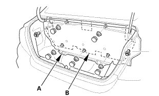 1. Remove the trunk front trim panel (A) and the trunk partition (B) as an assembly.
