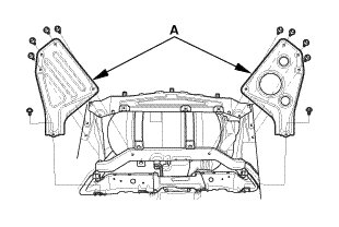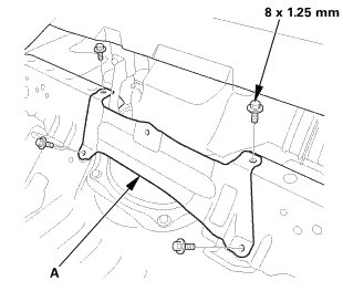1. Remove the rear floor upper crossmember gusset (A).