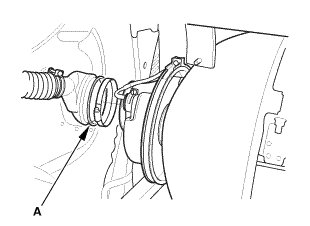 11. Within 1 minute, check for a leak at the vent hose outlet inside the fuel pipe protector (A).