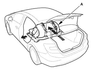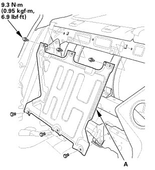 1. Remove the rear shelf gussets (A) in the trunk.