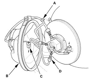 4. Remove the fuel pipes (D) from the fuel tank.