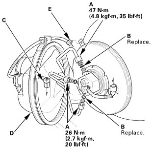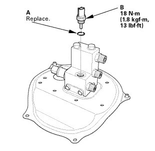1. Apply silicone oil or polyalkyleneglycol (PAG) oil to a new O-ring (A), and carefully install it into its proper position.