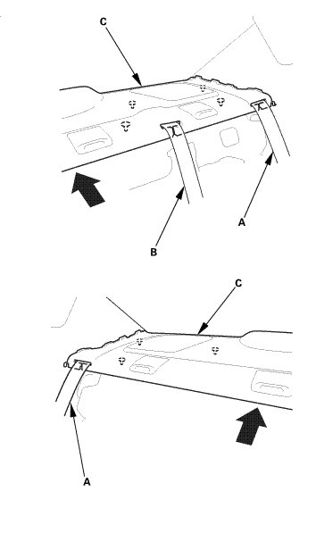 * Do not push too hard on the C-pillar trim. If you push too hard, the clip will be damaged, and it will not hold the trim properly.