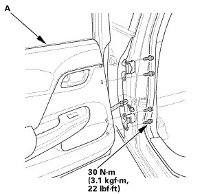 1. Remove the left rear door assembly (A).
