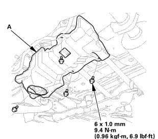 1. Install the fuel tank protector (A).