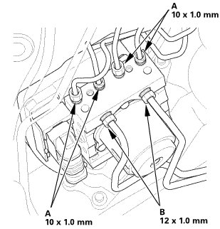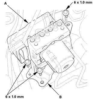 2. Install the VSA modulator-control unit (A) with the bracket (B).