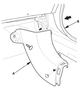 2. Remove the kick panel (B).