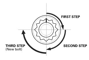 9. After torquing, tighten all cylinder head bolts in two steps (90 ° per step) using the sequence shown in step 8. If you are using a new cylinder head bolt, tighten the bolt an extra 90 °.