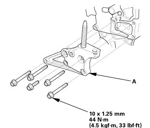 1. Install the side engine mount bracket (A), then tighten the side engine mount bracket mounting bolts.