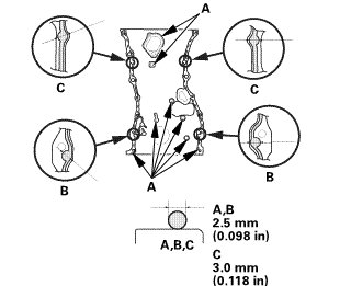 * Apply a 3.0 mm (0.118 in) diameter bead of liquid gasket along the broken line (C).