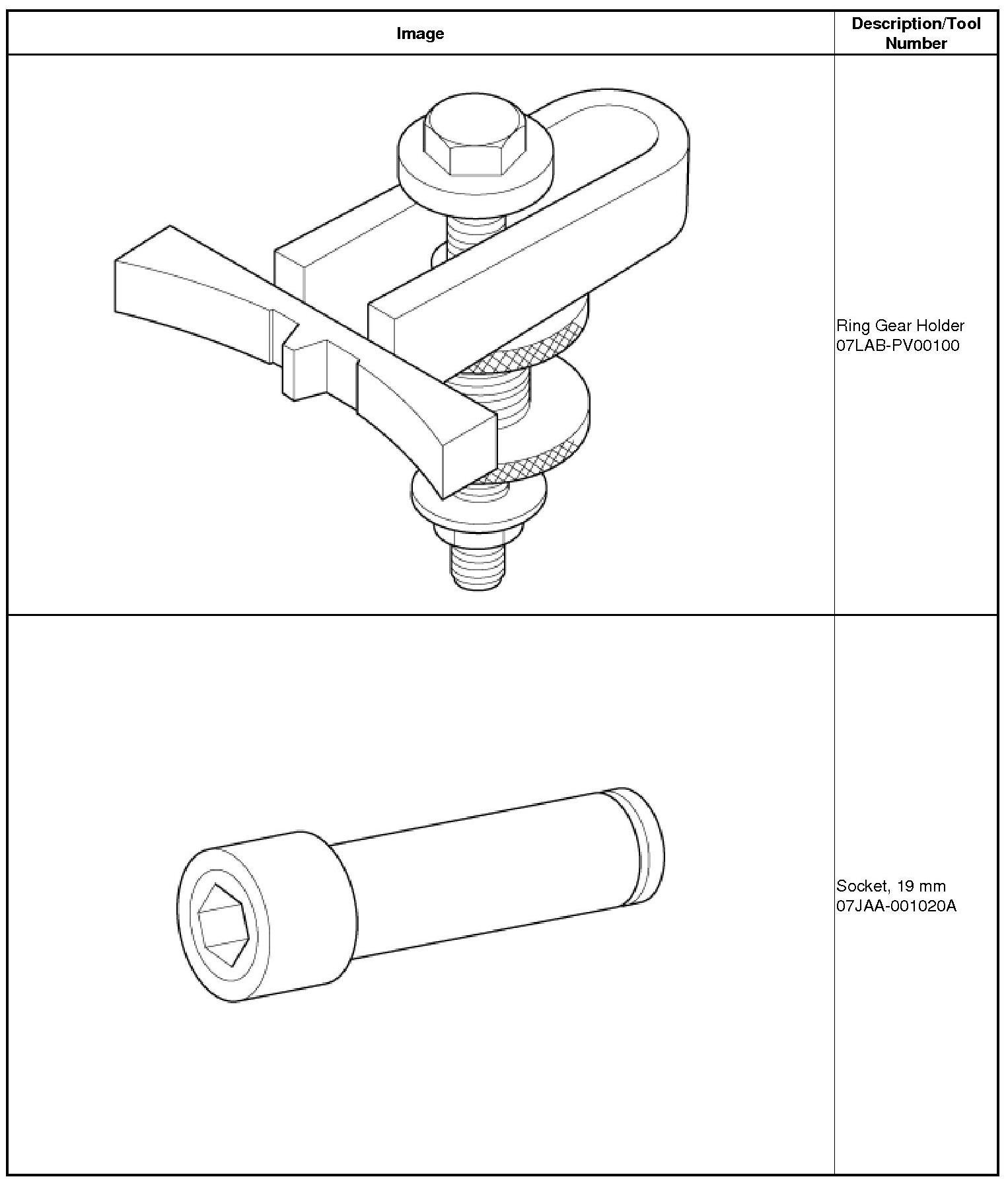 2. Remove the bolt with a socket, 19 mm (C) and a breaker bar, then remove the crankshaft pulley.
