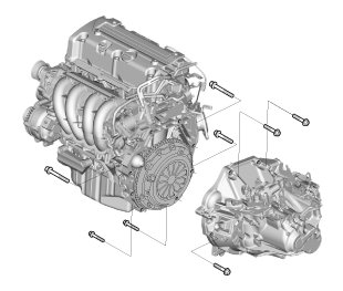1. Remove the clutch case cover and the transmission mounting bolts.