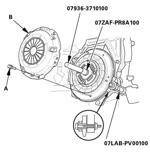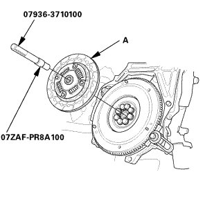 1. Remove the clutch disc (A), the clutch alignment shaft, and the remover handle.