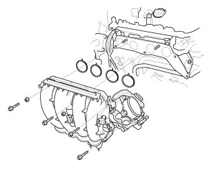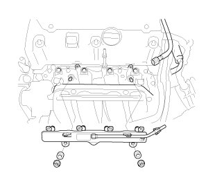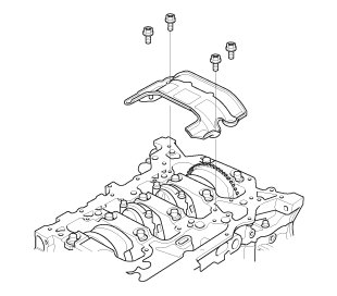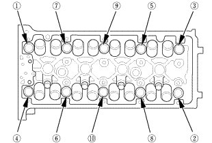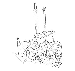 2. Remove the camshaft holder bolts. To prevent damaging the camshafts, loosen the bolts, in sequence, two turns at a time.