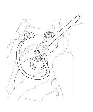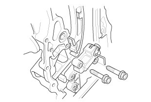 6. Use a transmission jack to lift the transmission 30-40 mm (1.18-1.57 in), then remove the oil pump chain auto-tensioner.