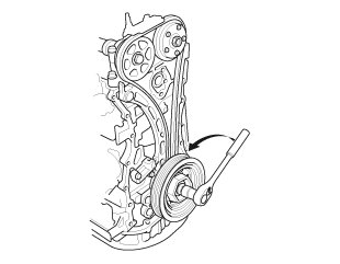 3. Turn the crankshaft counterclockwise to compress the oil pump chain auto-tensioner.