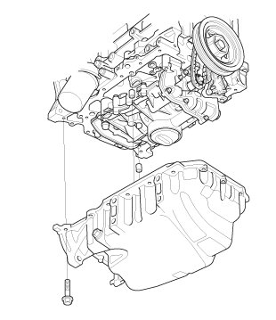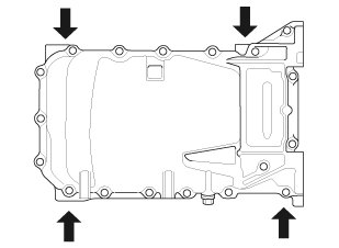 2. Using a flat blade screwdriver, separate the oil pan from the engine block in the places shown.