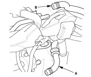 4. Connect the EVAP canister hose (A) and the brake booster vacuum hose (B).