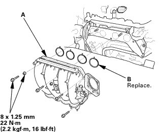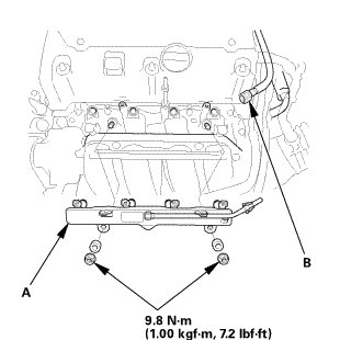 1. Connect the EVAP canister hose (A) and the brake booster vacuum hose (B).