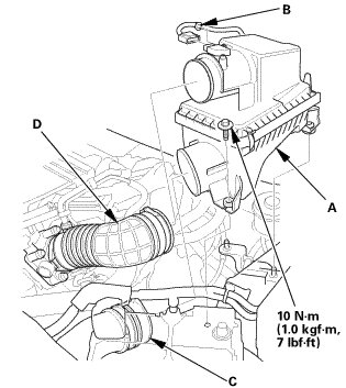 3. Connect the intake air pipe (C) and the intake air duct (D).