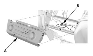 2. Disconnect the connectors, then pull out the audio-navigation unit (A).