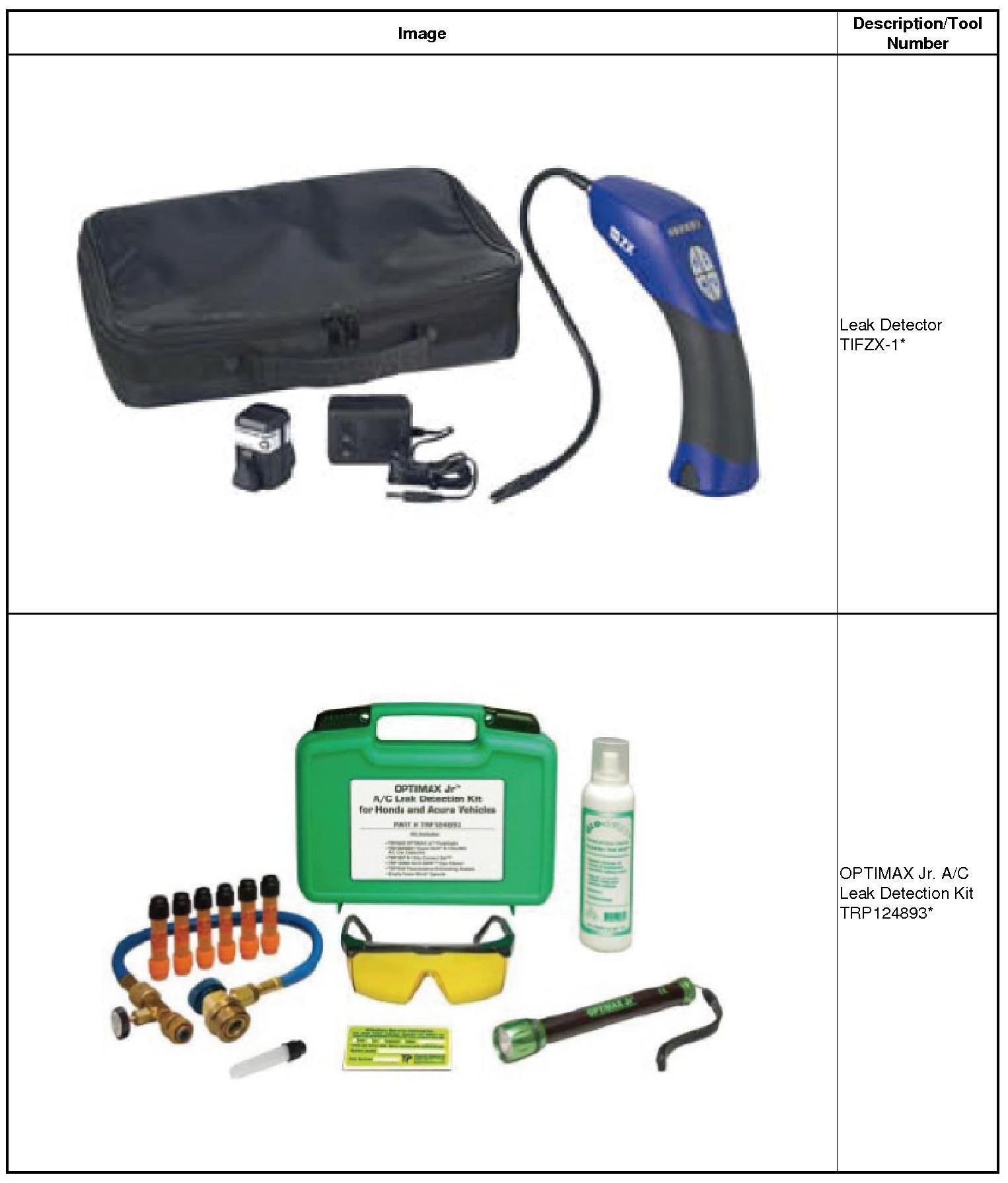 * Halogen leak detectors are sensitive to chemicals: windshield washing solutions, solvents/cleaners, and some vehicle adhesives. Keep these chemicals out of the area when doing leak detection.