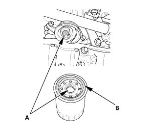 3. Inspect the threads (A) and the rubber seal (B) on the new filter.