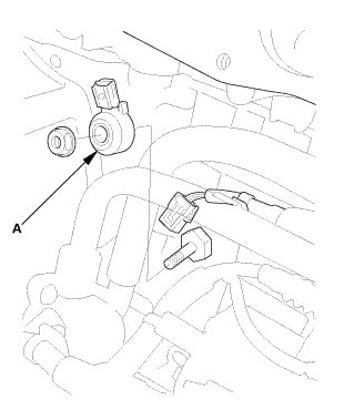 NOTE: When installing the knock sensor, make sure the direction of the sensor connector (B) is facing up.