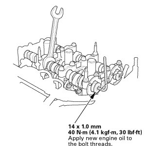3. Hold the camshaft with an open-end wrench, then tighten the bolt.