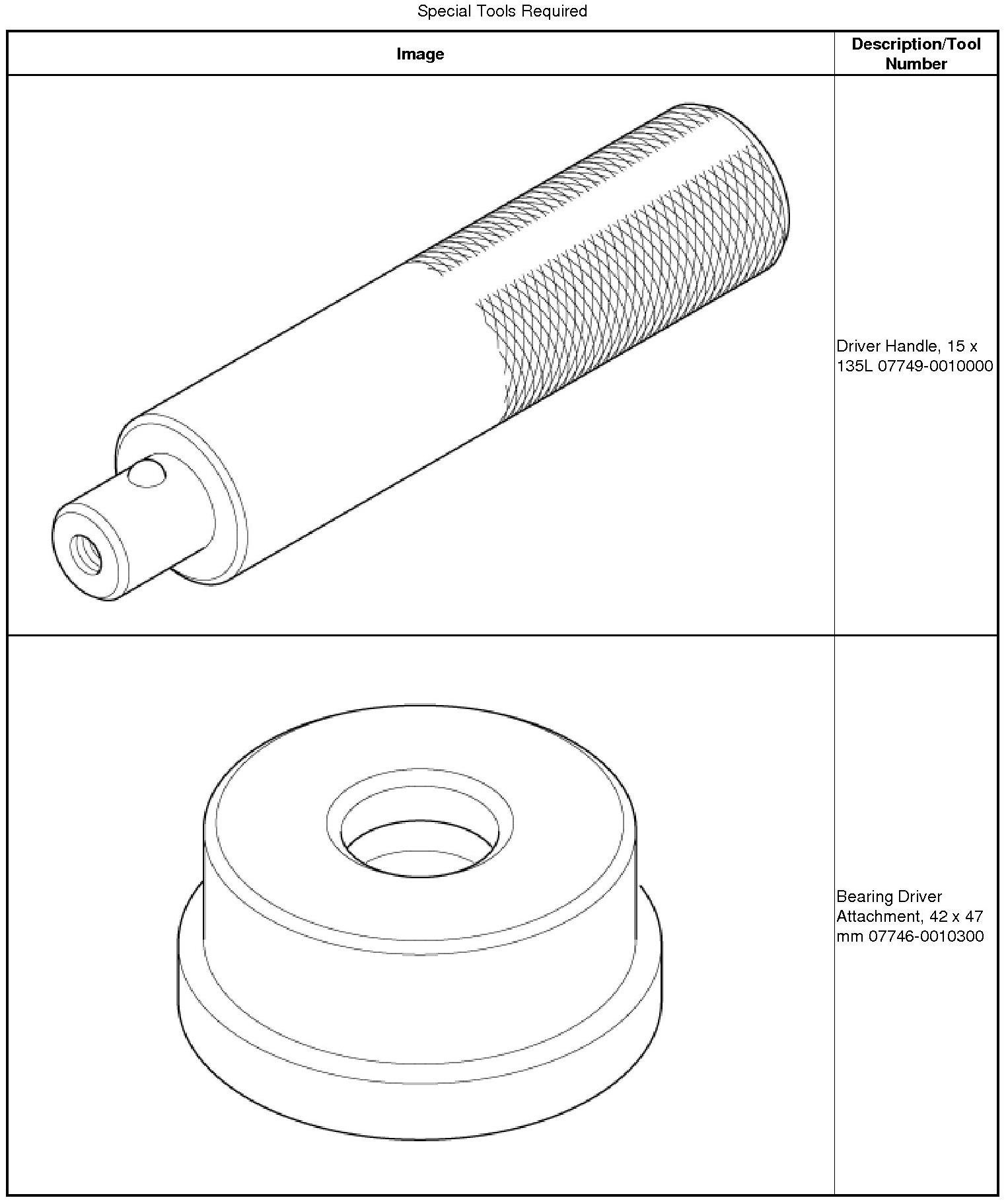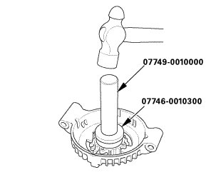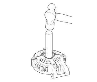 1. Install a new front bearing in the driver-end housing with a hammer, the driver handle, 15 x 135L, and the bearing driver attachment, 42 x 47 mm.