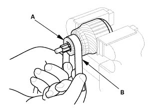 1. Check for continuity between the (+) brushes (A) and the (-) brushes (B). If there is continuity, replace the brush holder assembly.
