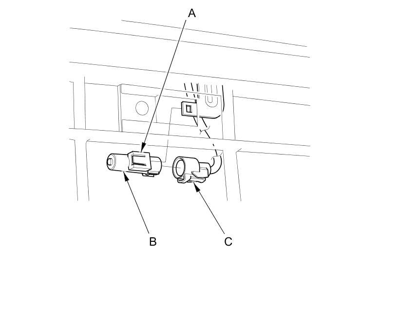 1. Lift the tab (A) to release the lock, then remove the outside air temperature sensor (B) from the front bumper beam. Disconnect the 2P connector (C) from the outside air temperature sensor.