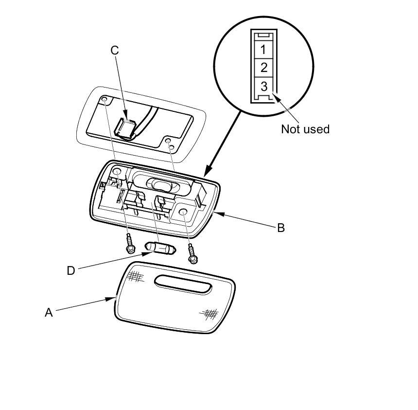 6. If the continuity is not as specified, check the bulb (D). If the bulb is OK, replace the ceiling light.