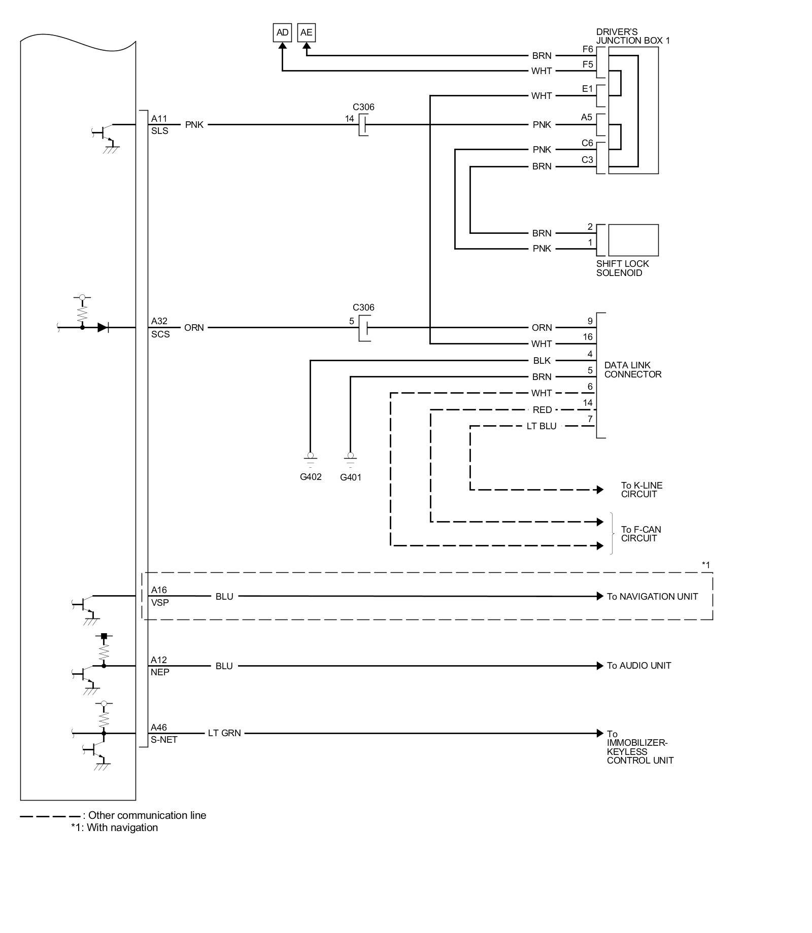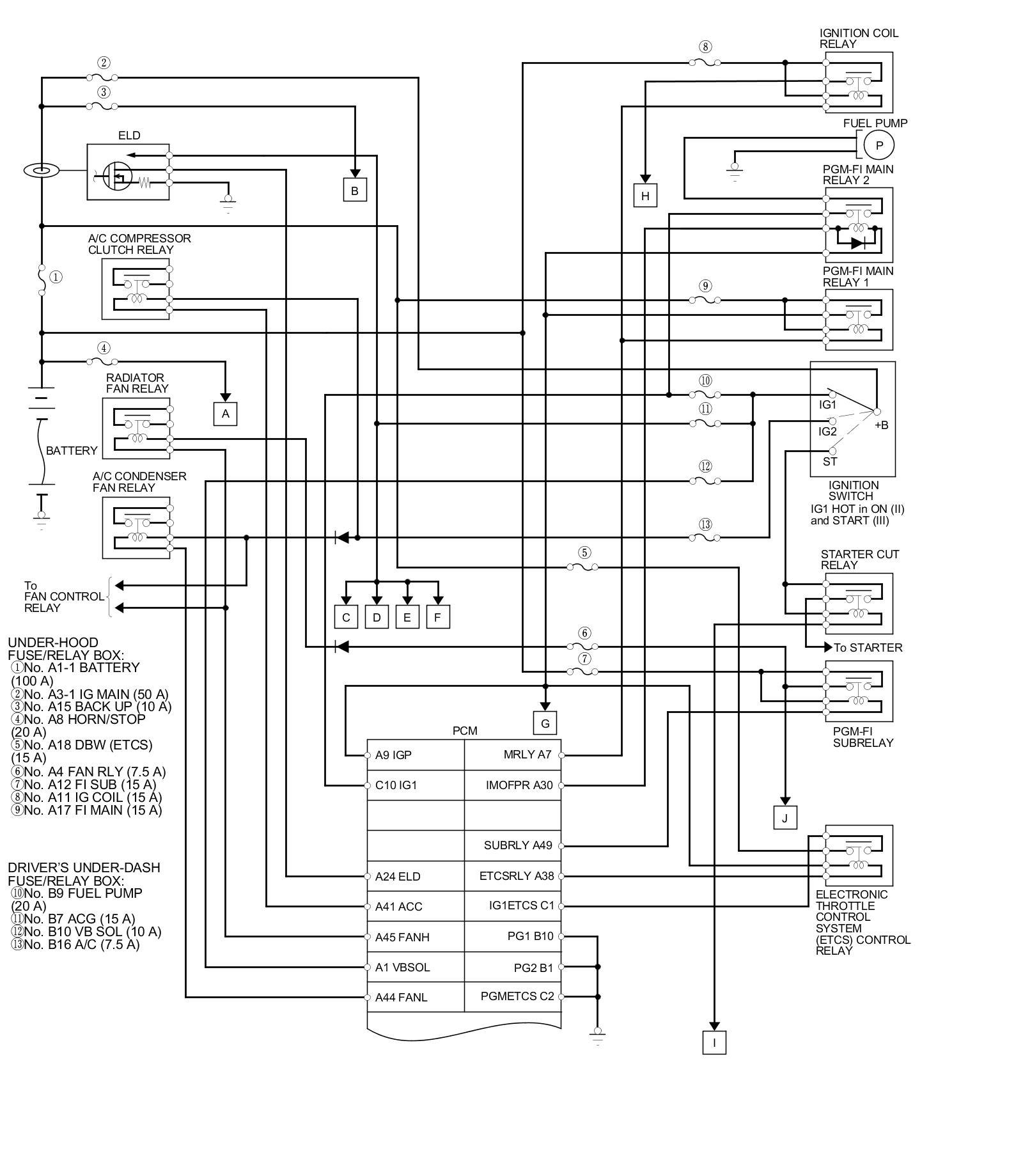 After the ignition switch is turned to LOCK (0), the PCM stays on for up to an hour. If the PCM connector is disconnected during this time, the PCM may be damaged. To cancel this mode, disconnect the negative cable from the battery or jump the SCS line with the HDS after the ignition switch is turned to LOCK (0).