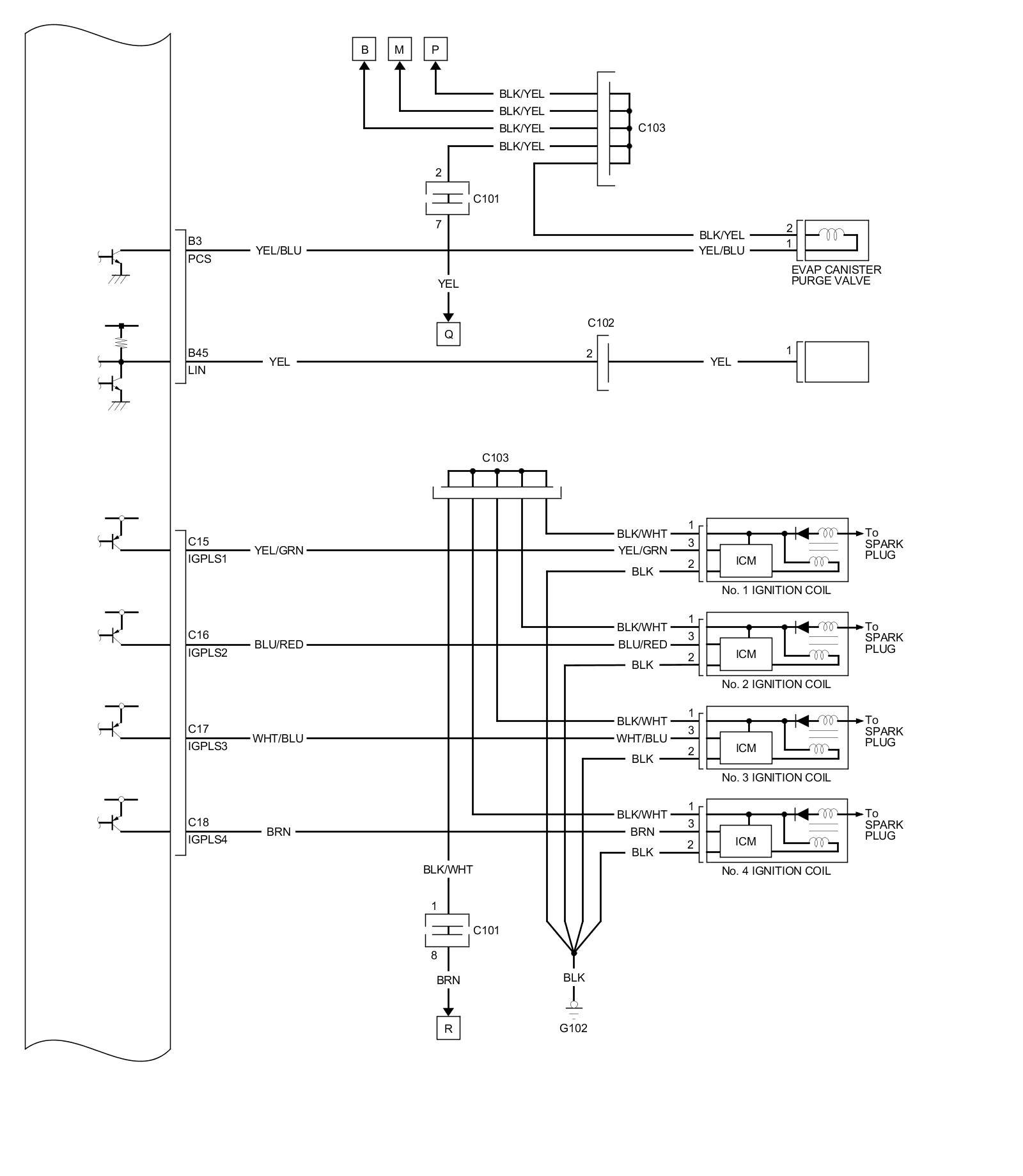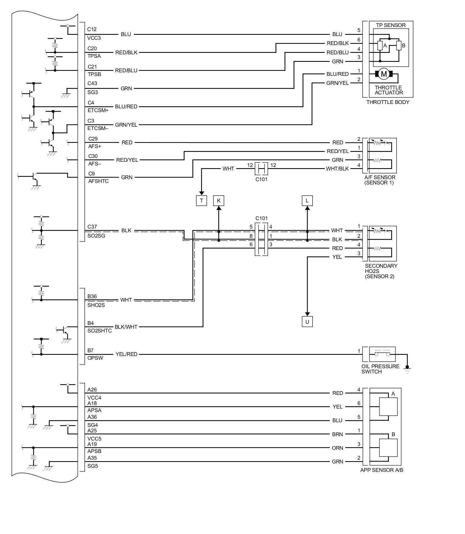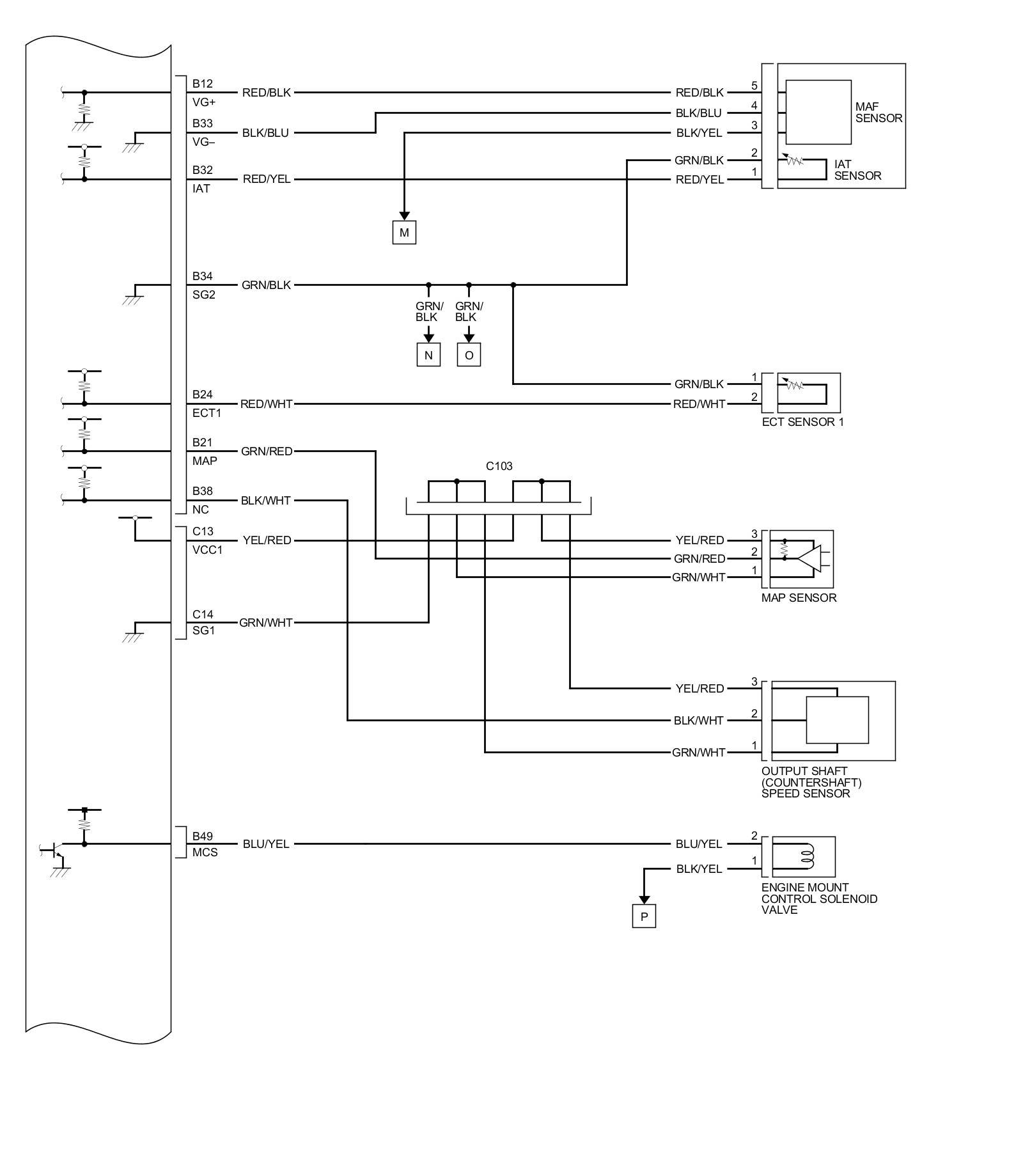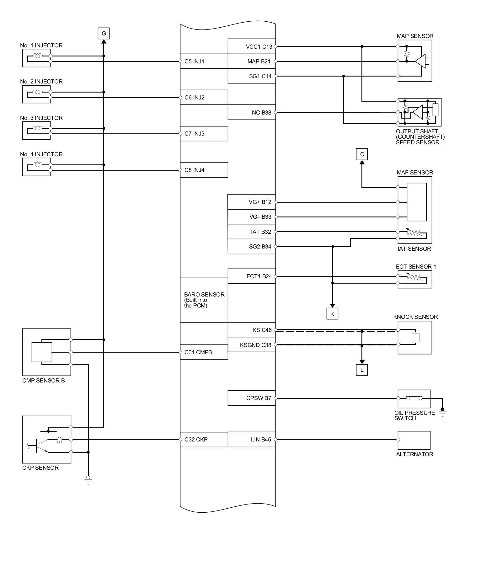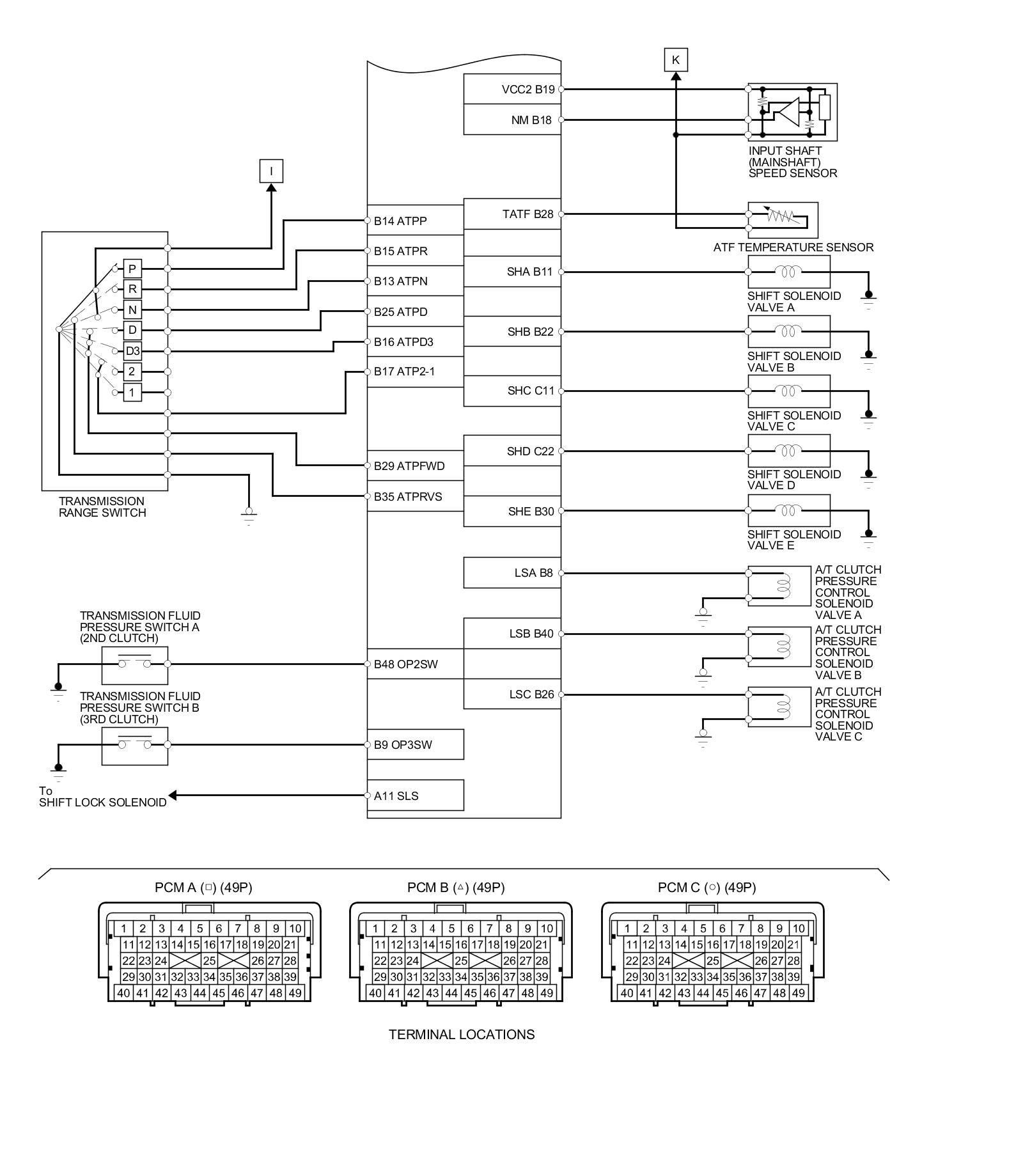 PCM Inputs and Outputs at PCM Connector C (circle) (49P)